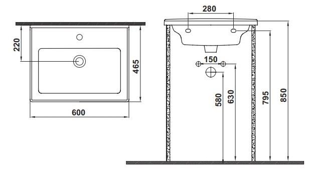 Hafele LEONIS 60 Lavabo,parlak beyaz,600x465