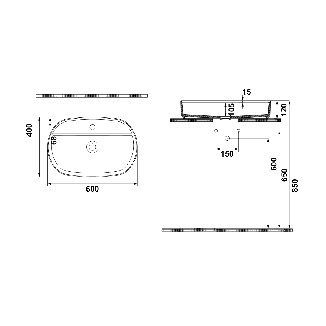 Hafele MILAGRO OB Lavabo,mat gri,600x400mm