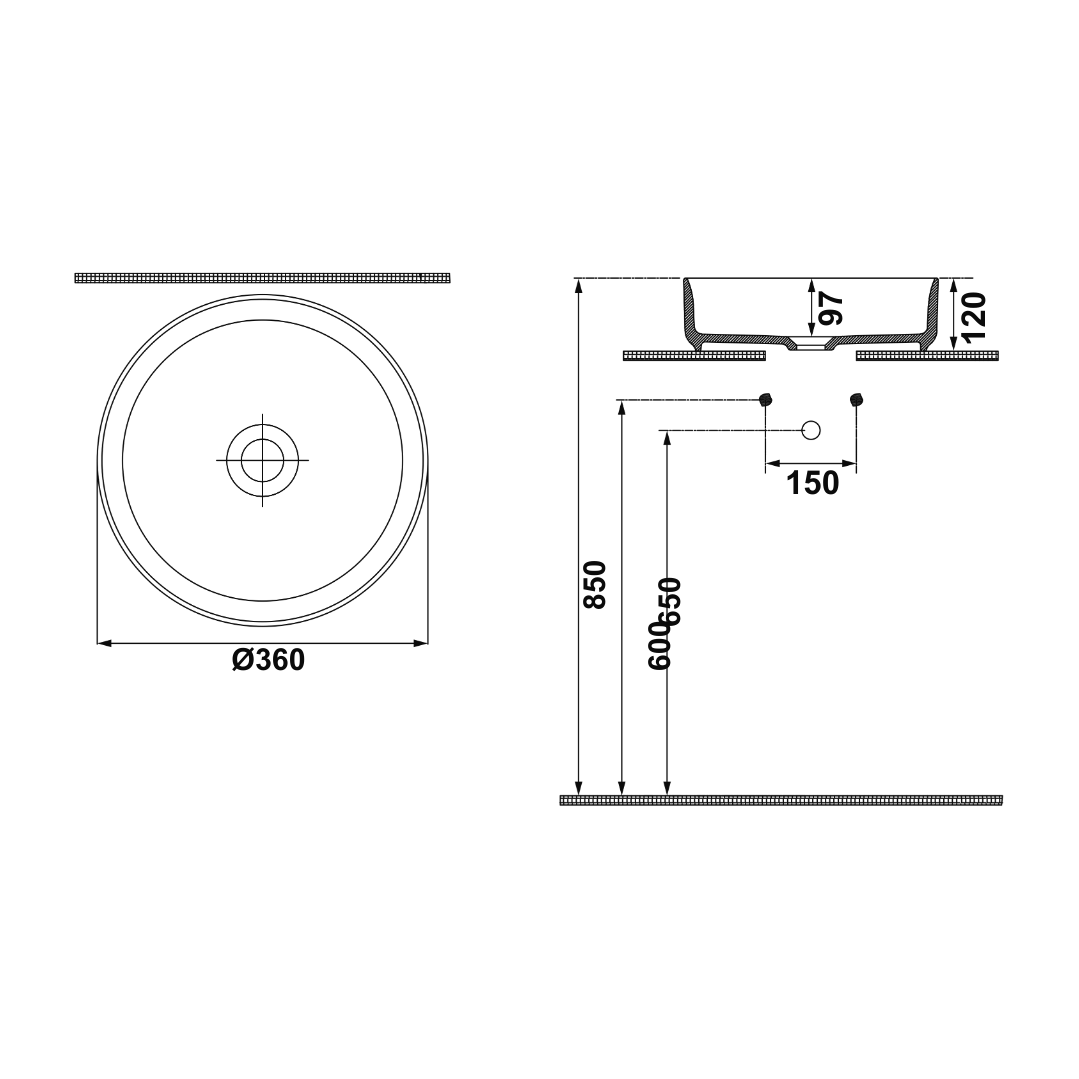 Hafele MILAGRO R Lavabo,mat siyah,360mm