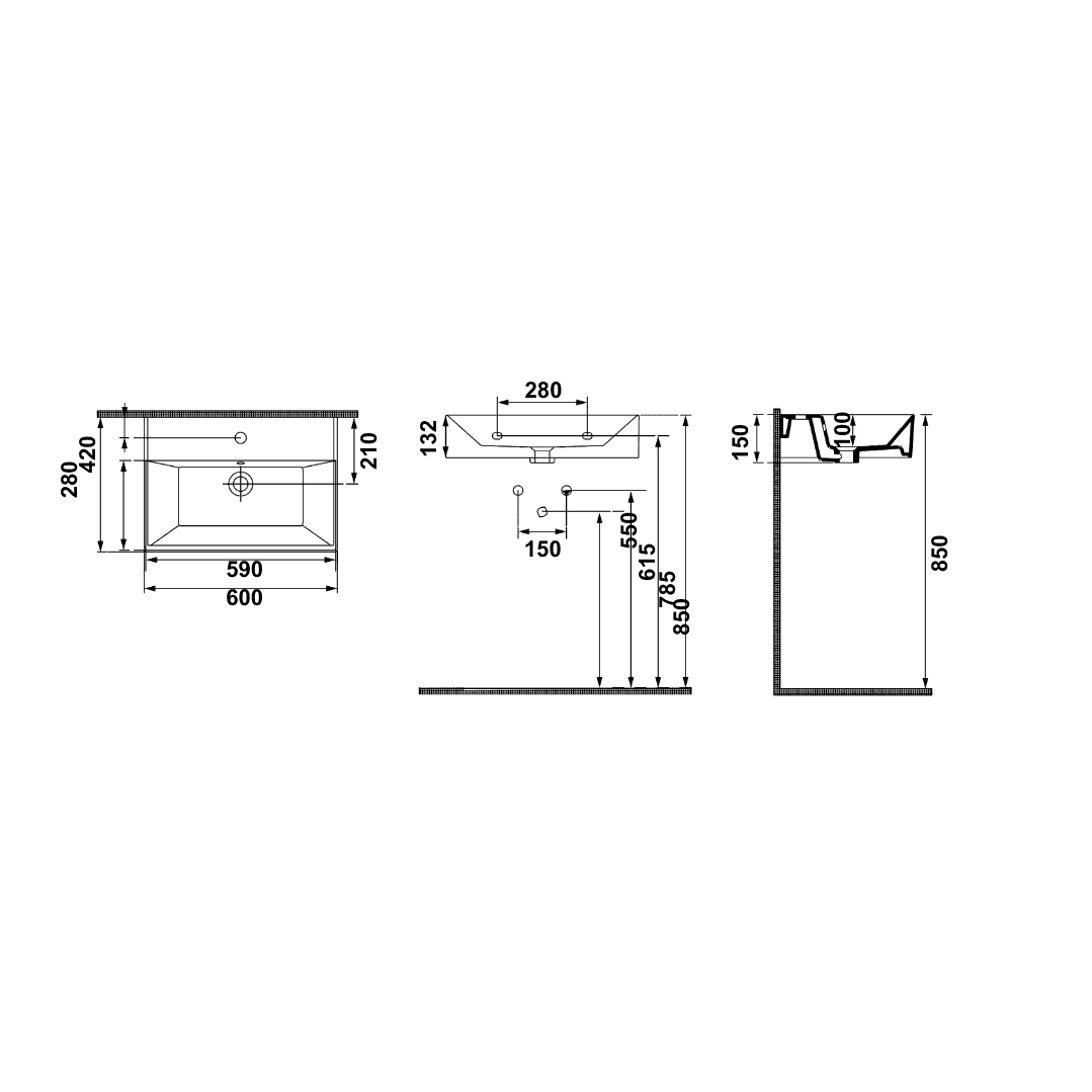 Hafele METROLINE 60 Lavabo,mat vizon,620x470mm